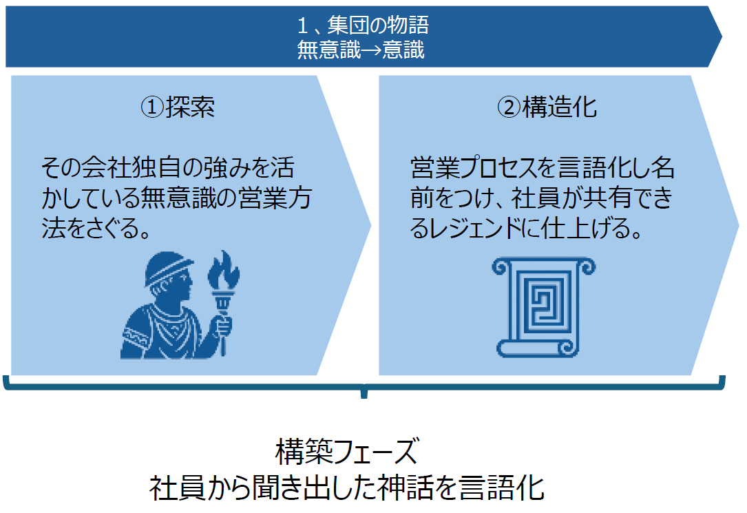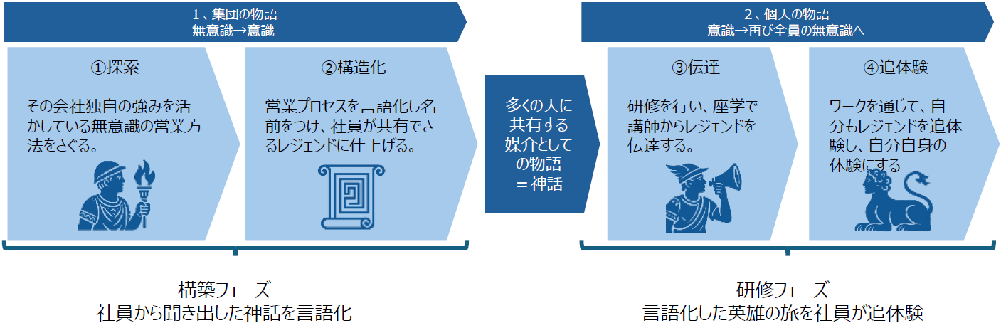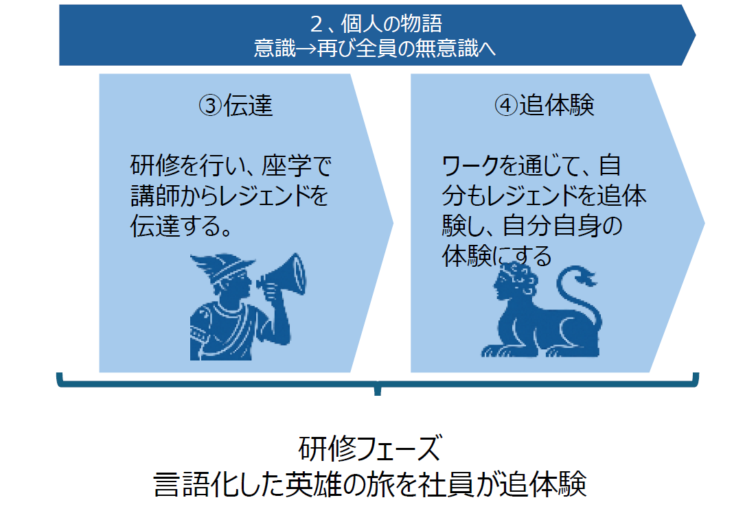 2、個人(社員)はこのレジェンドを追体験し、無意識の領域で自分のものにする。